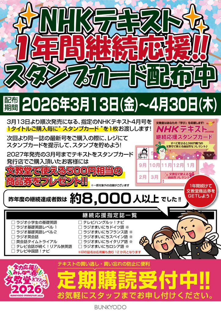📢 NHKテキスト継続応援スタンプカードが今年も登場‼️